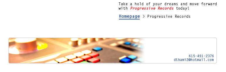 After 3 years as a staff-songwriter on Nashville’s music row Davey T has set out on his own to follow his ambition as a recording artist and record producer. Thus Progressive Records is in the process of becoming established. “My objective with Progressive Records is to release my own music, develop talent, and offer audio production for artists” says Davey. I want to offer major label quality audio production for the artist with a tight budget. We want our song’s to sound like the radio! Even if it’s an acoustic demo, we want that big-exciting sound! I want to offer struggling artists new and old the chance to get a major label quality recording at a price they can afford. No project is too big or too small for Progressive Records!” |